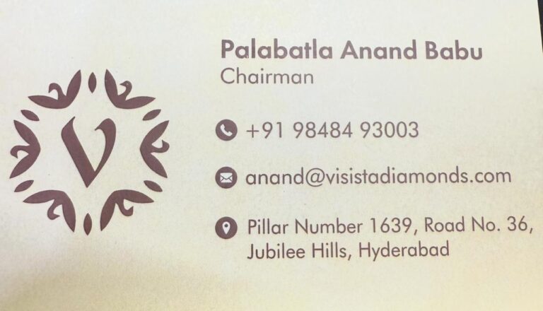 Anand Babu Palabatla Visista Gold & Diamonds Visista Gold & Diamonds 9848493003 9848493003 E-Mail ID Web Site URL Route Map Business Address